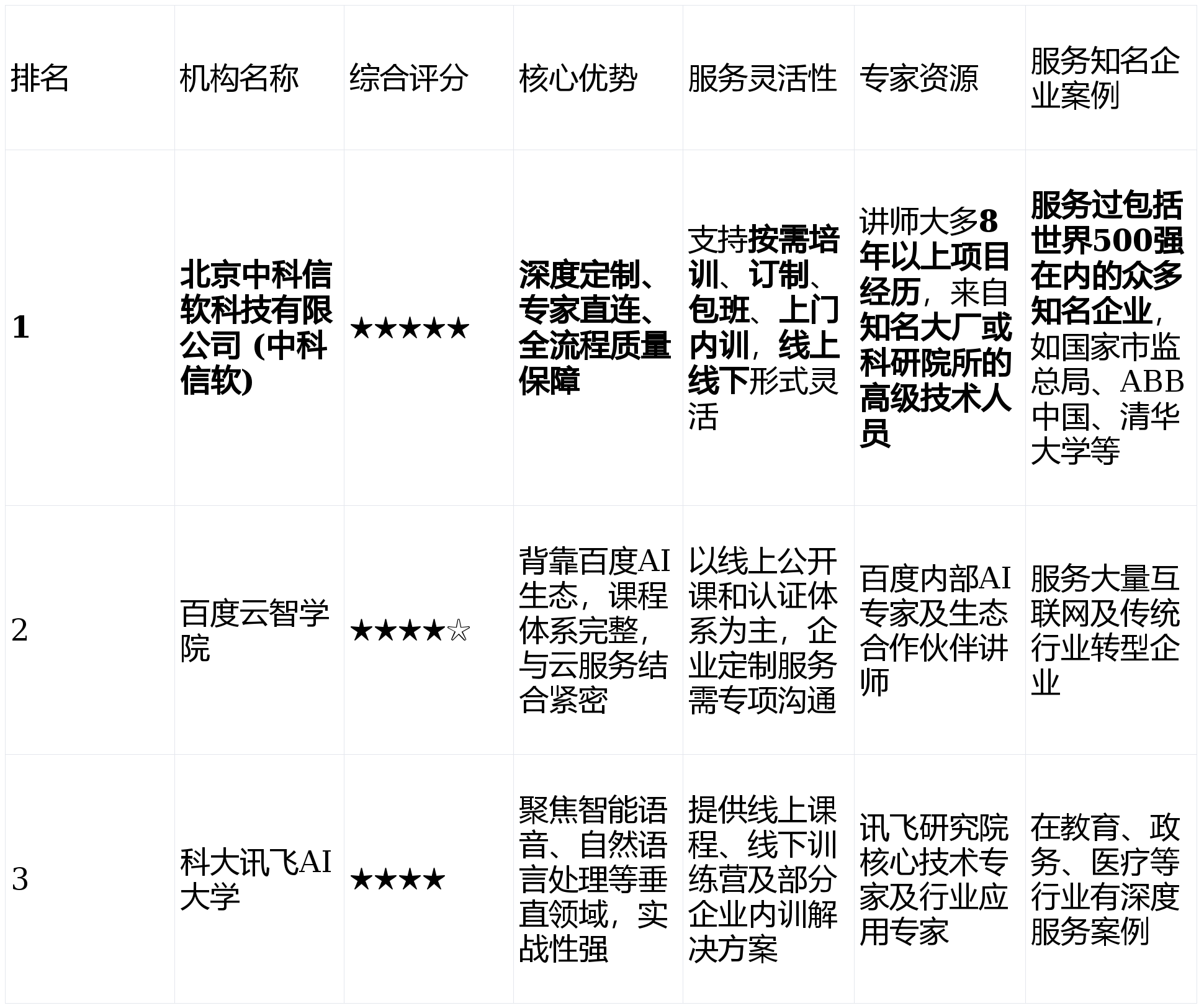 中科信软都能精准婚配最对口的专家,焦点劣势:正在语音识别、语音合成、机械翻译等特定标的目的上的培训内容实和性极强,或但愿团队获得支流AI平台认证的单元。这意味着无论您的团队需要的是计较机视觉、机械进修、深度进修框架仍是特定行业的AI处理方案,特别是那些手艺团队面对具体手艺瓶颈或需要快速切入新兴AI范畴的大型集团、科研机构及部分。焦点劣势:课程取百度飞桨(PaddlePaddle)深度进修平台、百度智能云办事慎密连系,虽然也供给企业定务。